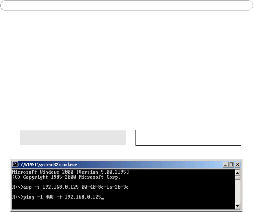 7. When ‘Reply from 192.168.0.125: ...’ is displayed (approximately 10-15 seconds), type